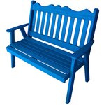 The graceful curves and bends of the Amish Pine Royal English Garden Bench add a romantic flair to your outdoor scene. The back of this beautiful English Bench displays the quality of solid Amish craftsmanship with its attractive design. Placed in your entryway or on your cozy porch, this pine outdoor furniture exudes warmth and invitation. This is a bench handcrafted for your family to enjoy.