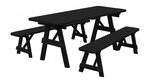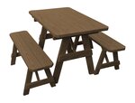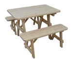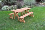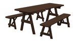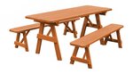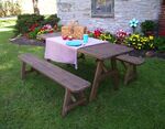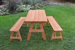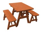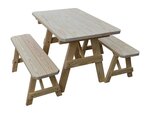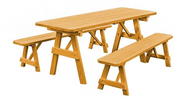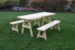 The Amish Pine Wood Traditional Table with Two Benches will become a family favorite outdoors. This pine outdoor furniture piece is warm and inviting for your outdoor meals, games and more. Made with untreated American grown knot free southern yellow pine, this outdoor furniture is tough and durable while being attractive and stylish at the same time.