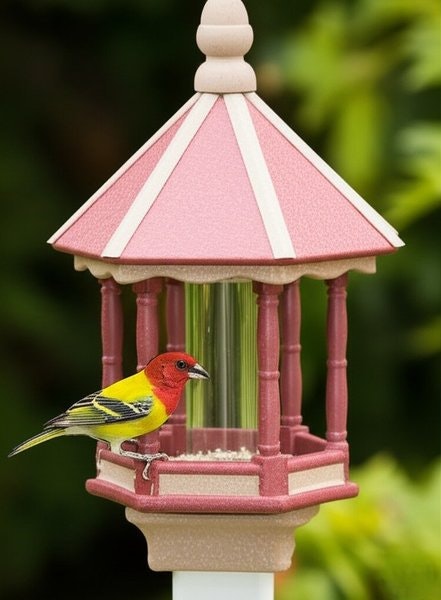 Invite Elegance and a Flurry of Feathered Friends: The Amish Made Poly Lumber Gazebo Fly-Thru Bird Feeder - Post Mount