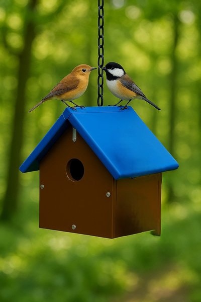 Witness New Life: Amish Made Recycled Poly Eco Friendly Bird House for Wrens or Chickadees – Your Backyard's Next Story!