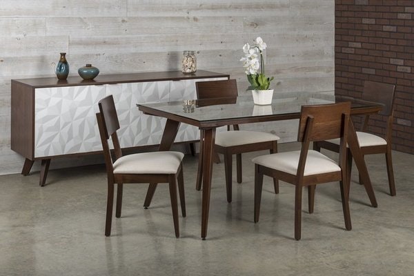 Stealing the show, the credenza is a standout piece with its eye-catching geometric panel front, a unique design element that adds visual interest and personality to your dining area. Beyond aesthetics, it provides practical storage for dinnerware, linens, or entertaining essentials, keeping your space organized without sacrificing style.