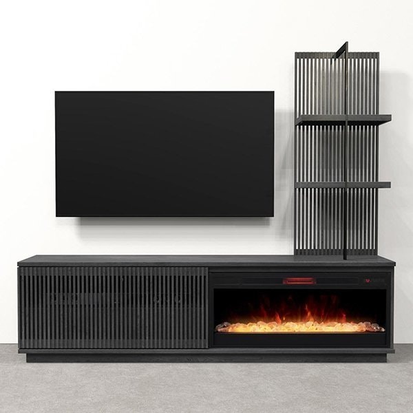 This unique modern media console offers storage for media collection and room for your TV. In addition, you have the option to add a fireplace insert to make it a cozy addition to living room, family room or den.