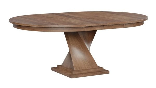 Ready to transform your dining space with furniture that speaks volumes about quality and style? Introducing our best-selling Amish Oxnard Single Pedestal Dining Table, now available in a stunning Quick Ship configuration, marrying contemporary design with the timeless reliability of authentic Amish craftsmanship. This table isn't just a place to eat; it's a statement piece. The heart of its design is the incredibly unique, thick single pedestal base. Masterfully sculpted from solid hardwood, it features a captivating twisted shape that draws the eye and adds a dynamic, sculptural element to your room. It's a modern artistic twist on a classic foundation, showcasing the artisan's skill in shaping solid wood.The Beauty of Brown Maple, Accelerated