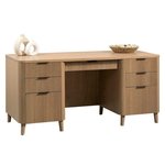 The executive desk serves as the centerpiece, offering ample surface space for spreadsheets, projects, or a laptop, plus a handy pencil drawer to keep essentials organized. Its finished back means it can stand confidently in the middle of a room, not just against a wall, adding flexibility to your layout. The credenza complements it beautifully, with a keyboard pullout that tucks neatly away and drawers designed to hold everything from files to stationery—practicality wrapped in a sleek silhouette. The bookcase, with four adjustable shelves, adapts to your needs, whether displaying professional books, decorative items, or storage bins, keeping your space both open and organized.
