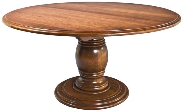 The Elegant Marion Single Pedestal Dining Table is sure to make a statement with its minimal angles. The Marion's pedestal is curved to perfection and eases into the circular base. While sitting at the Marion you'll find this style one of the least intrusive while enjoying the delicate edge profile craftsmanship from this Amish wood working shop.