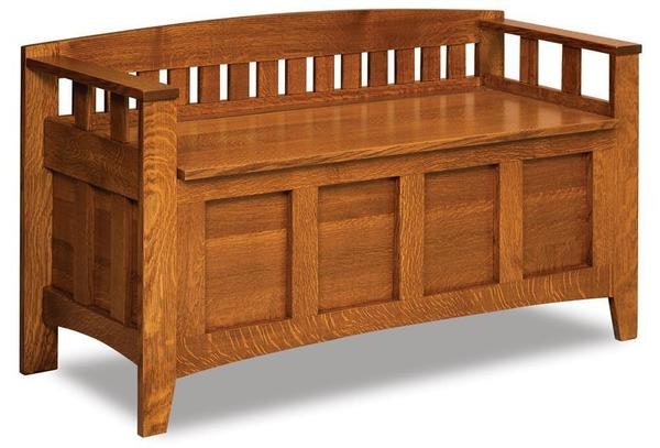 The beauty of the Amish Marlow Mission Storage Bench will take your breath away. Feature this bench in your foyer to present a warm welcome to all who enter. Tuck it into your guest bedroom or master bedroom for a solid wood chest to tuck blankets and quilts in. Add this Mission style bench to your family room display and sit for a while with a good book and some warm tea.