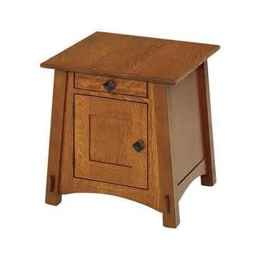 A solid 1-inch thick reversed beveled top starts out the design of our Amish Seboyeta Mission End Table. A dovetailed drawer with soft-close undermounts sits under the top followed by an inset panel door built standard with soft-close hinges. All of these features are part of a lovely mission-style design that tapers out and include exposed tenons on the legs. This piece shows off unique Mission-style characteristics at their best. Along with the beautiful design is the functionality, with drawer and door to store items and hide clutter.