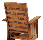 Handcrafted in the heart of America, this glider is built the way fine furniture used to be. Amish artisans shape every curve and joint with care, creating a solid hardwood frame defined by Mission-style beauty—vertical slats, exposed through-tenons, and the rich, honest grain of premium American wood. The craftsmanship shows before you even sit down, but once you do, the comfort tells the rest of the story.