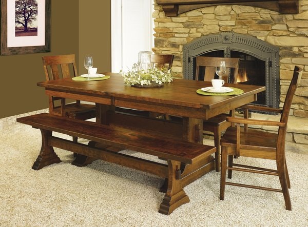 Amish McKinley Dining Table and Bench Set