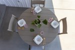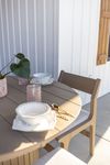 The sleek, tapered legs and clean-lined silhouette embody classic mid-century design, while the gently contoured back provides comfort for long meals or relaxing gatherings. Lightweight yet sturdy, this chair is easy to move and built to last season after season.