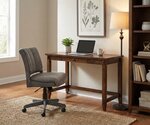 The Amish Midland Modern Armless Home Office Chair is versatile and capable of acting as a desk chair, conference table seating or client seating. With the height adjustment, swivel and upholstered chair back this desk chair works great for any size. Everyone also loves the extra thick seat cushion for added comfort on those long work days. This Amish desk chair is high end, comfortable seating at its best.