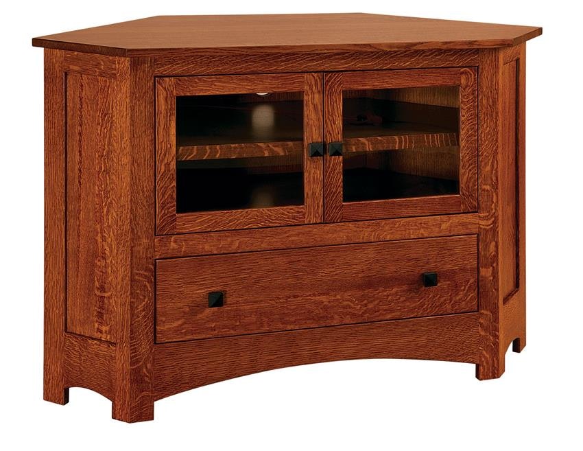 Our Roanoke Mission Corner TV Stand is a thoughtfully designed, space-saving solution tailored to fit your needs. This versatile stand is available in three distinct sizes, each offering a unique storage configuration to suit your preferences and living space.