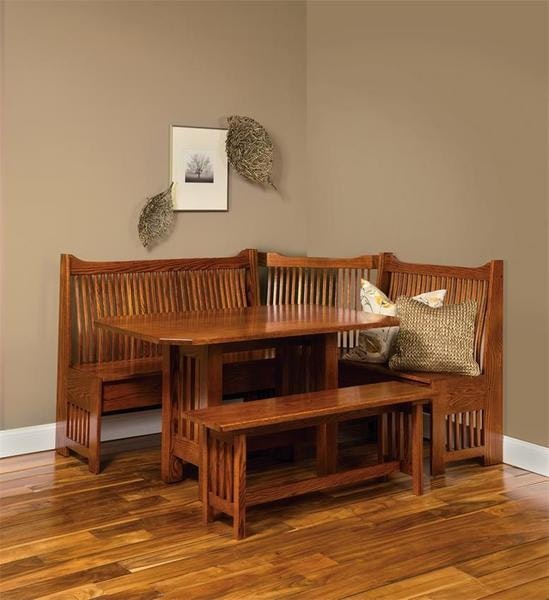 Please call for pricing on customized large bench and small bench sizes. Our Amish breakfast nooks can be interchanged to fit in a right or left-facing corner. Individual pieces are also available - please call to speak to one of our helpful furniture specialists for pricing. We offer a wide variety of breakfast nook sets in many styles and sizes. Some assembly is required by just connecting six connector bolts.