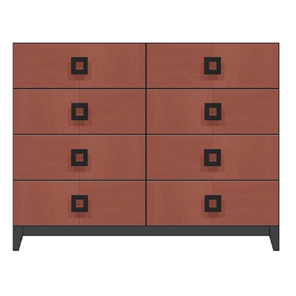 At first glance, the dresser’s appeal lies in its thoughtful design: eight drawers arranged in four neat rows of two, each featuring a sleek panel front that adds subtle texture without overwhelming the piece. This attention to understatement keeps the focus on the wood’s natural beauty and the dresser’s practicality. Below, a sturdy wooden base grounds the piece, providing a solid foundation that enhances stability while adding a quiet visual anchor to its modern profile.