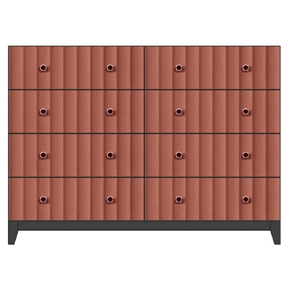 Beneath, a sturdy wooden base grounds the piece, with clean lines that complement the dresser’s sleek profile. It provides reliable support while keeping the overall look light and intentional, perfect for both minimalist and layered bedroom aesthetics.