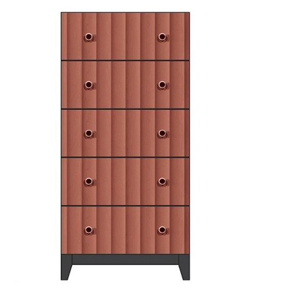 What sets this chest apart is its ripple drawer front, a distinctive design element that adds subtle texture and movement. The gentle vertical ridges catch the light, creating a dynamic look that elevates the piece beyond basic storage. Complementing this detail is a sleek wooden base, which grounds the chest with sturdy support while maintaining the clean, uncluttered aesthetic that defines modern style.