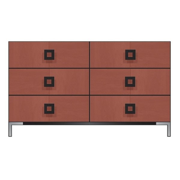 At first glance, the panel drawer fronts stand out—smooth, flat, and unadorned, they create a sleek, unified look that feels intentionally modern. This simplicity is elevated by the dresser’s metal base, which replaces traditional wooden legs with a streamlined, understated frame. The metal adds a subtle industrial touch, lightening the visual weight of the piece and giving it an airy, contemporary stance that keeps the room feeling open.