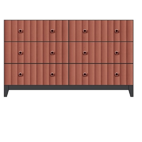 What sets this dresser apart is its distinctive ripple drawer fronts—vertical grooves that add subtle texture and visual interest, turning a simple storage piece into a design statement. The six drawers, arranged in two columns of three, offer ample space to organize clothing, linens, or accessories, while their clean, uniform layout keeps the look streamlined and modern. Below, the sturdy wooden base grounds the dresser with a low profile, enhancing its sleek silhouette and ensuring stability.