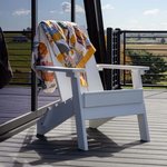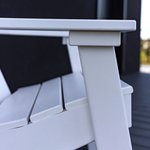 Its sloped backrest gently cradles you, encouraging hours of leisurely reading or conversation, while the wide, flat armrests offer a natural spot to rest a book, plate, or your morning coffee. The clean, straightforward lines give it a fresh, contemporary look that complements everything from a cozy backyard patio to a lakeside deck—no fussy details, just understated charm.
