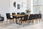 Gather friends and family around a table that makes a statement – the Amish Modern Minimalist Dining Trestle Table. Handcrafted by our skilled Amish Craftsmen, this table is built for the rhythm of the everyday family, offering a perfect fusion of sturdy construction and clean, modern design. Its simplistic lines bring a refined modern industrial feel to any dining room or kitchen. Anchoring this striking table are its robust black powder-coated metal tapered bases. These bold, clean supports provide unwavering stability and lend that sought-after industrial edge. The tabletop is a substantial 1 1/2" thick Rectangle Top. The grain on this stunning table runs lengthwise, creating a seamless and beautiful visual flow across the surface. This attention to the wood's natural look is sure to make a statement. Bring some authentic Amish furniture from DutchCrafters into your modern farmhouse or urban New York loft. This table is designed to fit seamlessly into various contemporary settings. Pair this modern table with our matching backless dining bench for a cohesive and stylish seating arrangement.Design Your Modern Trestle Table: