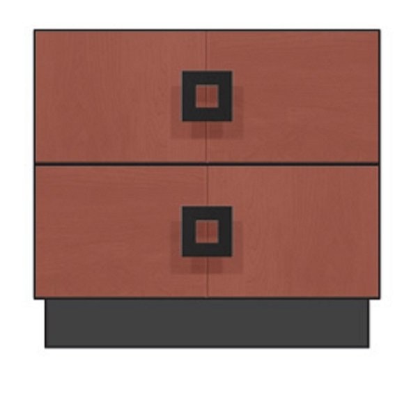 The design shines in its understated details. Two smooth, paneled drawer fronts add subtle depth, their crisp lines enhancing the nightstand’s modern silhouette without unnecessary ornamentation. Below, a sturdy platform base grounds the piece, providing a sleek, low-profile foundation that feels both stable and refined, keeping the focus on the nightstand’s clean, uncluttered form.
