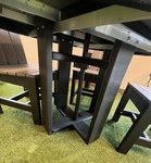 The tabletop features subtle, parallel slats that add texture without overwhelming the modern aesthetic, creating a smooth surface that’s both inviting and easy to maintain. Below, the base stands out with its sturdy, geometric design: two vertical supports are artfully connected by a crossbar, forming an open, stable structure that feels light yet remarkably solid. This thoughtful engineering ensures the table stays steady during lively gatherings, from weekend brunches to evening dinners under the stars.