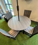 Crafted from Dutchline Poly Lumber in Ohio by skilled Amish artisans, this table is built to withstand the elements. Unlike traditional outdoor furniture, poly lumber resists fading, warping, and moisture, so you won’t spend time fretting over rain or harsh sun—simply wipe it clean for a like-new look. A convenient 1.8” diameter umbrella hole, complete with a plug for when shade isn’t needed, adds practicality, letting you adapt the table to any weather.