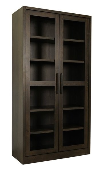 Its tall, vertical profile maximizes vertical space, making it ideal for rooms where floor area is precious yet impact matters. The two glass doors frame the interior beautifully, offering a clear view of your displayed items while maintaining a clean, uncluttered look. The solid wood frame, with its straight, sleek lines, embodies modern simplicity, ensuring it complements both contemporary and transitional decor without overwhelming the room.