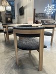 These contemporary looking four upholstered arm chairs are in stock and ready to ship as shown. Order today!