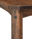 At first glance, the table’s thick 1 1/4" top commands attention with its substantial presence, promising durability for daily use, whether it’s for shared family meals, helping kids with homework, or grand holiday celebrations. The elegant 3" clipped corners soften the design, harmonizing beautifully with the mission edge that evokes clean, distinctive lines—ideal for both traditional and craftsman-style homes. But what truly sets this table apart are the exquisite handcrafted walnut inlays adorning each leg, a subtle yet striking detail that elevates the table's overall aesthetic, making it a standout piece in any dining space.