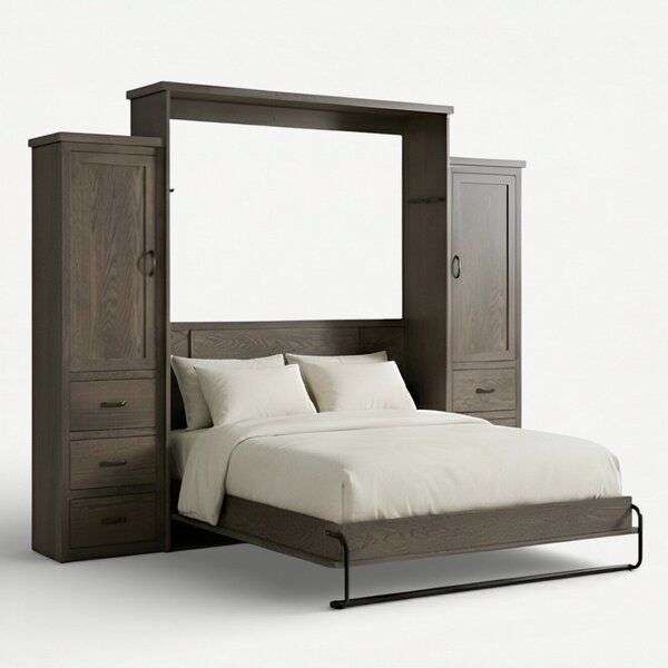 The Amish Murphy Bed is custom-made so that you can choose your hardwood and finish. You can also add side tower cabinets, such as tall or short side cabinets. This Amish Murphy bed is built to last decades. After being hand built, we'll deliver it directly to your home to enjoy for years and years. You'll be amazed by this beautiful Murphy bed design's attention to detail and high-quality construction.
