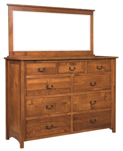 This solid wood Mission Tall Dresser with Optional Mirror has nine-drawers to add additional space to your bedroom. Customize your piece by selecting the wood type and finish to match your decor. Look to add other pieces to your bedroom check out the Mission Bed, Mission Armoire, Mission Three-Drawer Nightstand, and Mission Lingerie Chest.