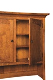 You have many options with the Noble. It will be built in the wood you select and finished in the stain you choose. You can opt for just the lower storage drawers, or add what you need with a topper full of shelving and cabinet storage.