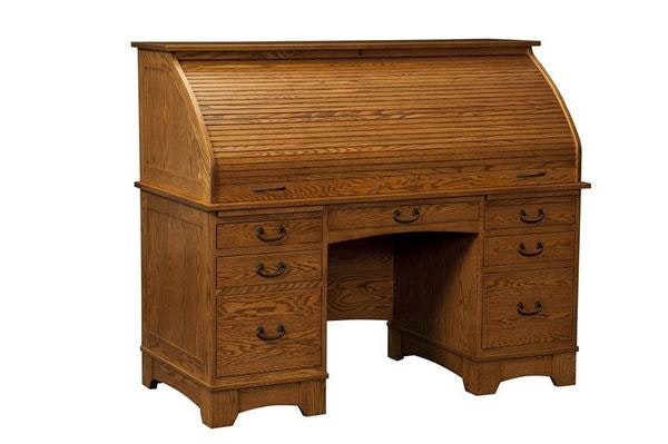 This mission rolltop desk provides you with privacy whenever you need it. Roll the solid wood top down to cover up a work in progress, keeping your office tidy and organized. This mission desk is shown in red oak wood which is known for its strength, durability, and beauty. The appeal of this mission style office furniture will never go out of style and the quality construction is sure to produce a desk that will be used for generations to come.