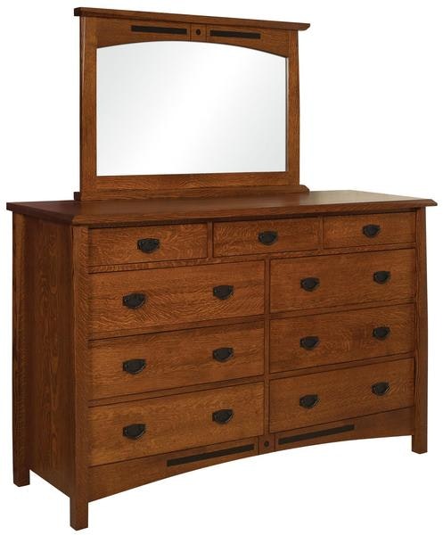 Enhance any bedroom suite with the addition of our Amish Nolan 9-Drawer Dresser with Optional Mirror. Get this Amish dresser handcrafted in the hardwood and finish of your choice. To really complete your purchase add on a matching mirror.