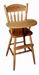 Amish Oak Wood Post High Chair with Slide Tray - Choose Back Design