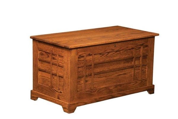 Add our Amish Okarche Bench Chest to your bedroom for added storage at the foot of your bed that you can utilize for many years! This beautiful solid wood hope chest comes standard with one lock and soft close hinges for easy opening and closing. The full cedar lining inside of this chest will add an aromatic cedar scent to your bedroom and protect clothes and linens from moths.