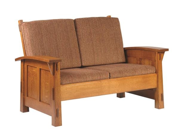 This Amish Pembroke Loveseat pairs solid hardwood with reversible fire-retardant cushions. The exposed tendons and paneled sides create a transitional look that can be appreciated by everyone. Handcrafted in the USA, this love seat provides a comfortable and durable place that the whole family can enjoy. Whether it is relaxing after a long day, having a friend over for a cup of coffee, or reading a book to your children, this loveseat will produce memories and comfort for years.