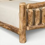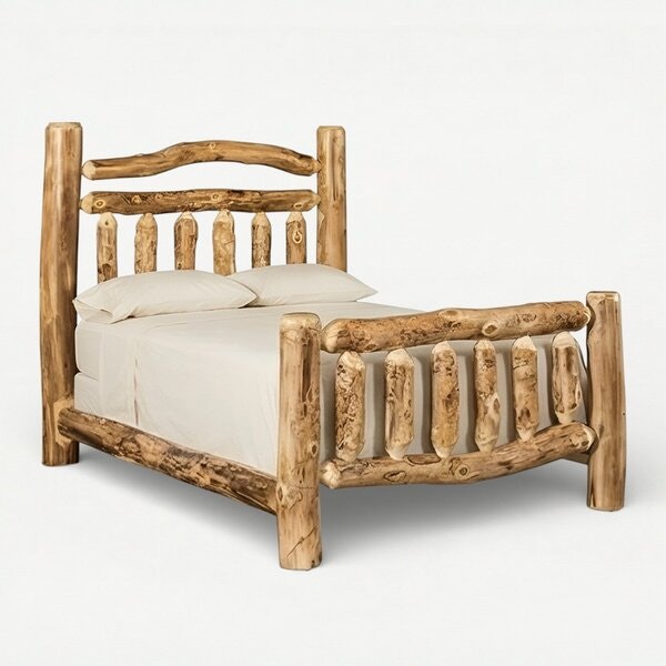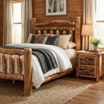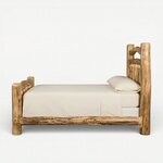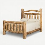 This rustic log bed is built in your choice of rustic wood. We also offer this same bed in a quick shipping log bed if you need your new bed to arrive sooner.