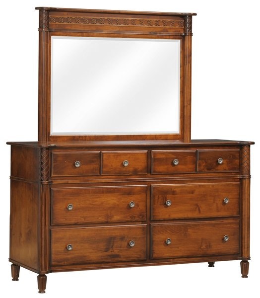 Bring home the beautiful Amish Ornament 66" Low Double Dresser with Optional Mirror for added storage in any bedroom! This solid wood double dresser can be handcrafted in seven different hardwoods and a wide variety of finish colors! You can customize this Amish dresser to fit in your bedroom by giving us a call at our number - 941-867-2233.