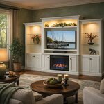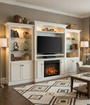 With a versatile, decorative appeal, this entertainment center strikes the perfect balance between functional storage and warm, inviting style. The pictured finish—a sophisticated combination of greens and taupes—creates a cozy ambiance, complementing any living room décor and making the fireplace the ultimate centerpiece.
