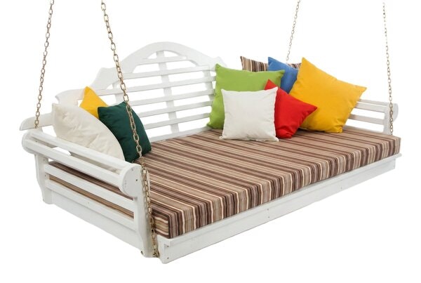 The Amish Yellow Pine 75" Marlboro Twin Mattress Swing Bed is the ultimate combination of comfort and fun outside. Make your porch or patio stand out with the Marlboro featured in the custom colors you're wishing for. This swing bed is sure to become a hot spot outside with ample room for napping, cuddling, or gathering with family. Enjoy a swinging seat as you share ice cream or iced-tea. The kids will love this pine outdoor furniture to play on and share with siblings and friends. Enjoy this spacious swing bed as your favorite spot outside to socialize or the ideal place to get away from it all.