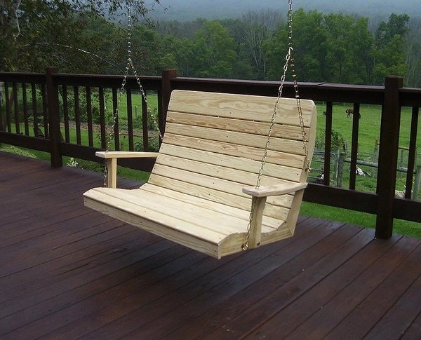 Available in three sizes, choose from a 4', 5' or 6' swing to fit your unique needs. Each swing is crafted from high-quality pressure-treated pine and can be delivered unfinished or stained with a variety of color options to match your unique decor. Add color cushions and pillows to complete the look of your new swing and the finishing touches on your new porch swing.
