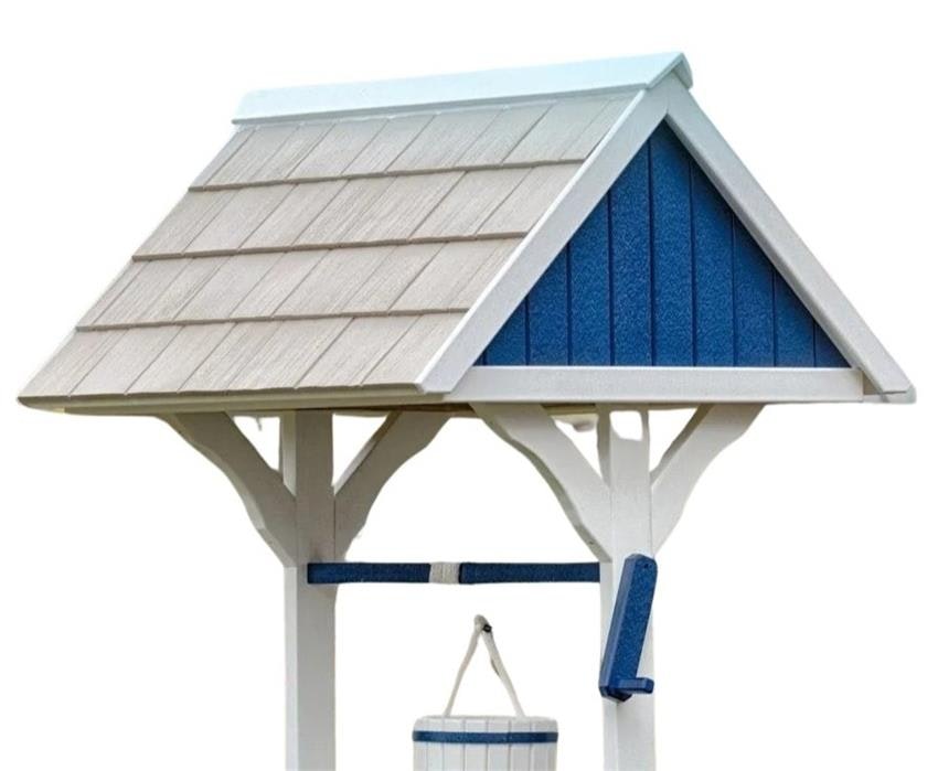 A delightful addition to your outdoor decor, the Amish Poly Wishing Well with Poly Roof comes in many colors. This quaint Amish wishing well features a crank and bucket. The well is made of poly lumber that's been hailed as the new outdoor "miracle" furniture. Poly is made with recycled plastic and is resistant to outdoor elements. It's also low maintenance, making it even more attractive!