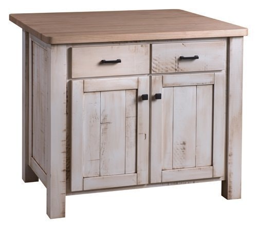 The Amish Preston Island Cabinet is a beautiful rustic island perfect for smaller kitchens and serving areas. Built with solid wood construction by experienced Amish woodworkers, this island cabinet features rough sawn barn floor wood bases with an adjustable shelf behind the two cabinet doors for storage. Use this island cabinet in the kitchen to prepare dinner for the family, as an area to hold drinks and refreshments for a friendly get-together, or pair it with the Amish Nero Home Central Bar with Shelves in the dining room or den.