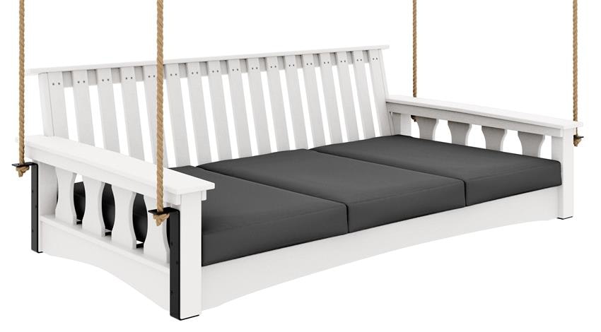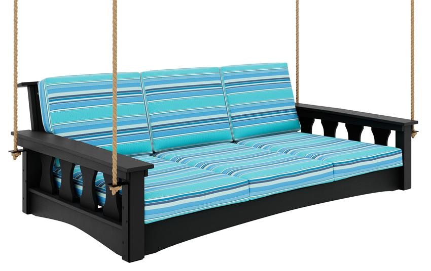 The pergola comes in black and is made with solid 4" x 4" steel tubing. The daybed comes in your choice of poly colors and is equivalent to a twin sized bed. There will be plenty of room to enjoy a good book as you sway with the breeze in the comfort of your handcrafted Amish-made Pergola with Swing Bed.