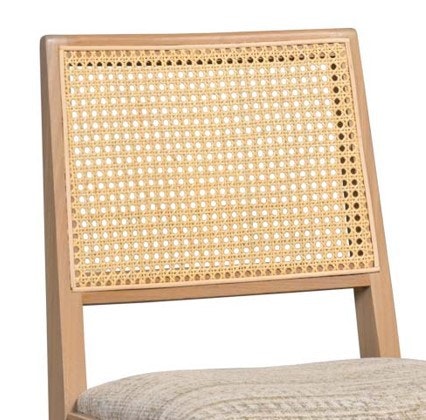 The first detail that draws you in is the woven rattan backrest—open, textured, and gently organic. It adds a breath of warmth to the chair’s clean lines, softening the silhouette while maintaining a crisp, contemporary edge. This isn’t just a visual accent; it lets light filter through, keeping the chair feeling airy and uncluttered, perfect for both cozy breakfast nooks and larger dining rooms.
