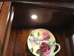 The Webb Curio Cabinet's standard features include three flush doors with glacier glass and LED lighting, glass sides, a shiplap back, and two drawers. Two adjustable glass shelves with plate grooves that run the full width of the cabinet are also standard.