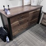 At the center of the set is the bed, anchored by a substantial headboard that balances presence with restraint. Its clean, paneled design adds subtle texture without overwhelming the space, while the low 14-inch footboard keeps the room feeling open and airy—perfect for smaller bedrooms or those craving a relaxed, uncluttered vibe. The bed’s frame, crafted with the same attention to detail, complements the headboard with sleek lines that blend seamlessly into both modern and transitional decors.