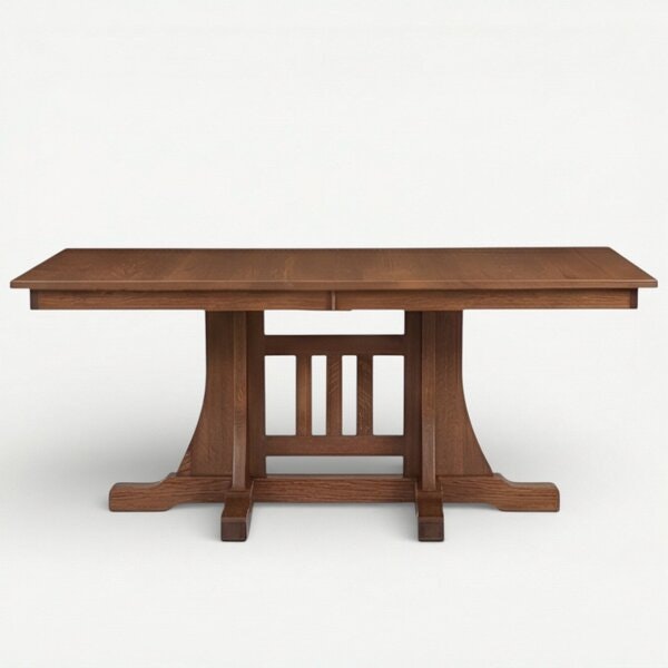 The Cumberland Mission Double Pedestal Dining Table is a work of art that showcase the beauty of solid wood furniture. The detail of the double pedestal base is graceful and precise. This versatile double pedestal table will easily host a formal tea party, a sweet sixteen birthday party or a tantalizing, tasty four course meal.